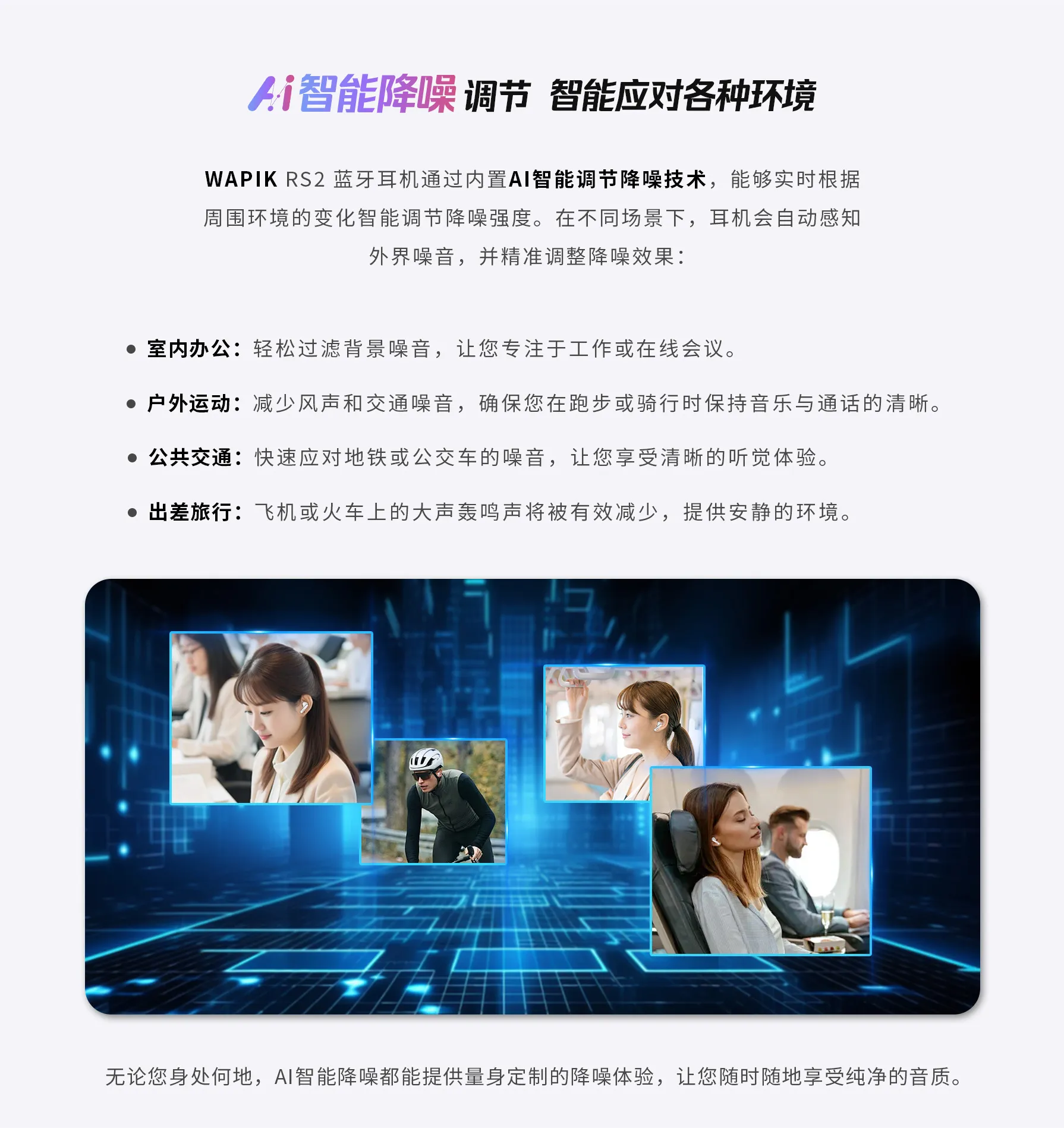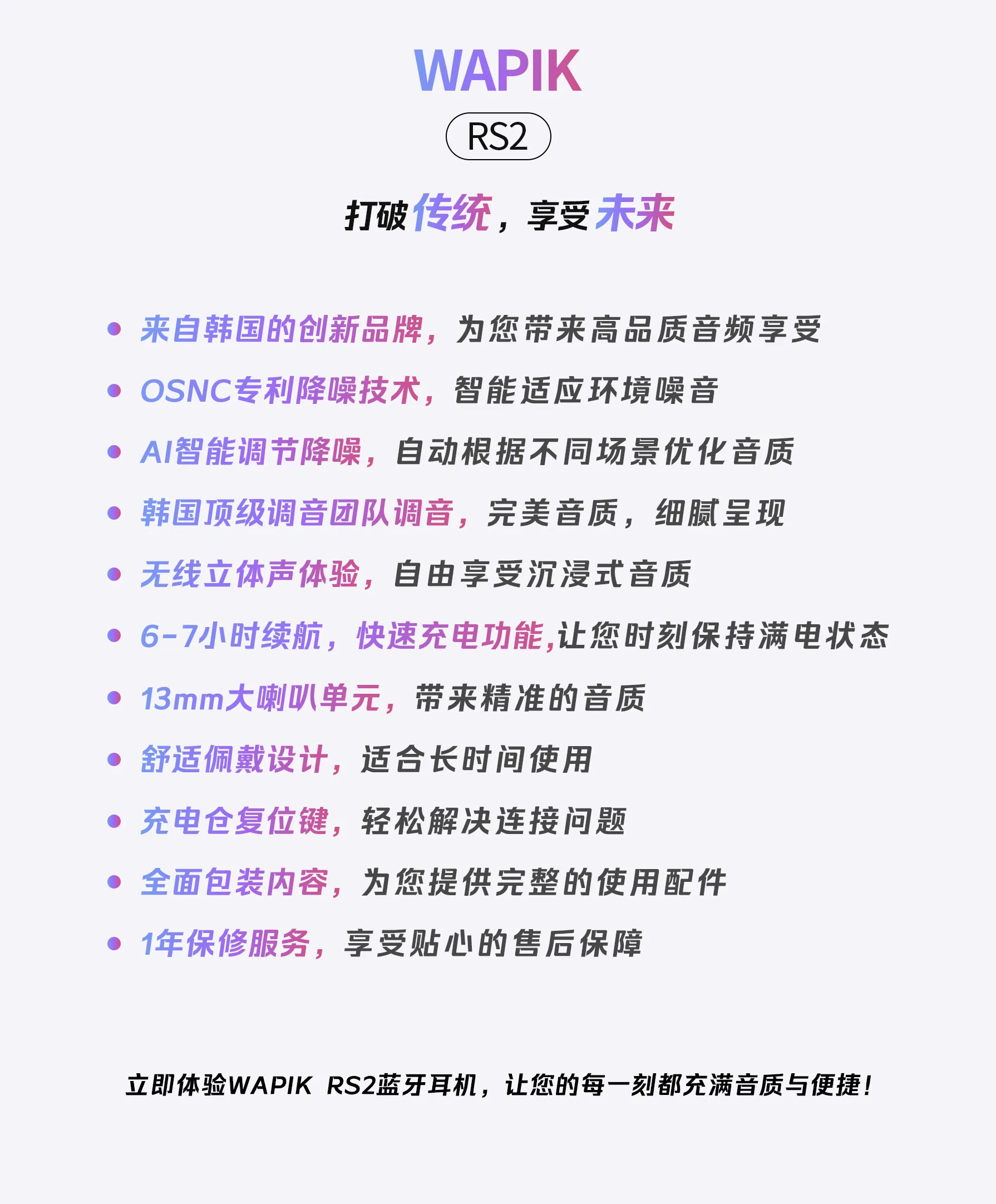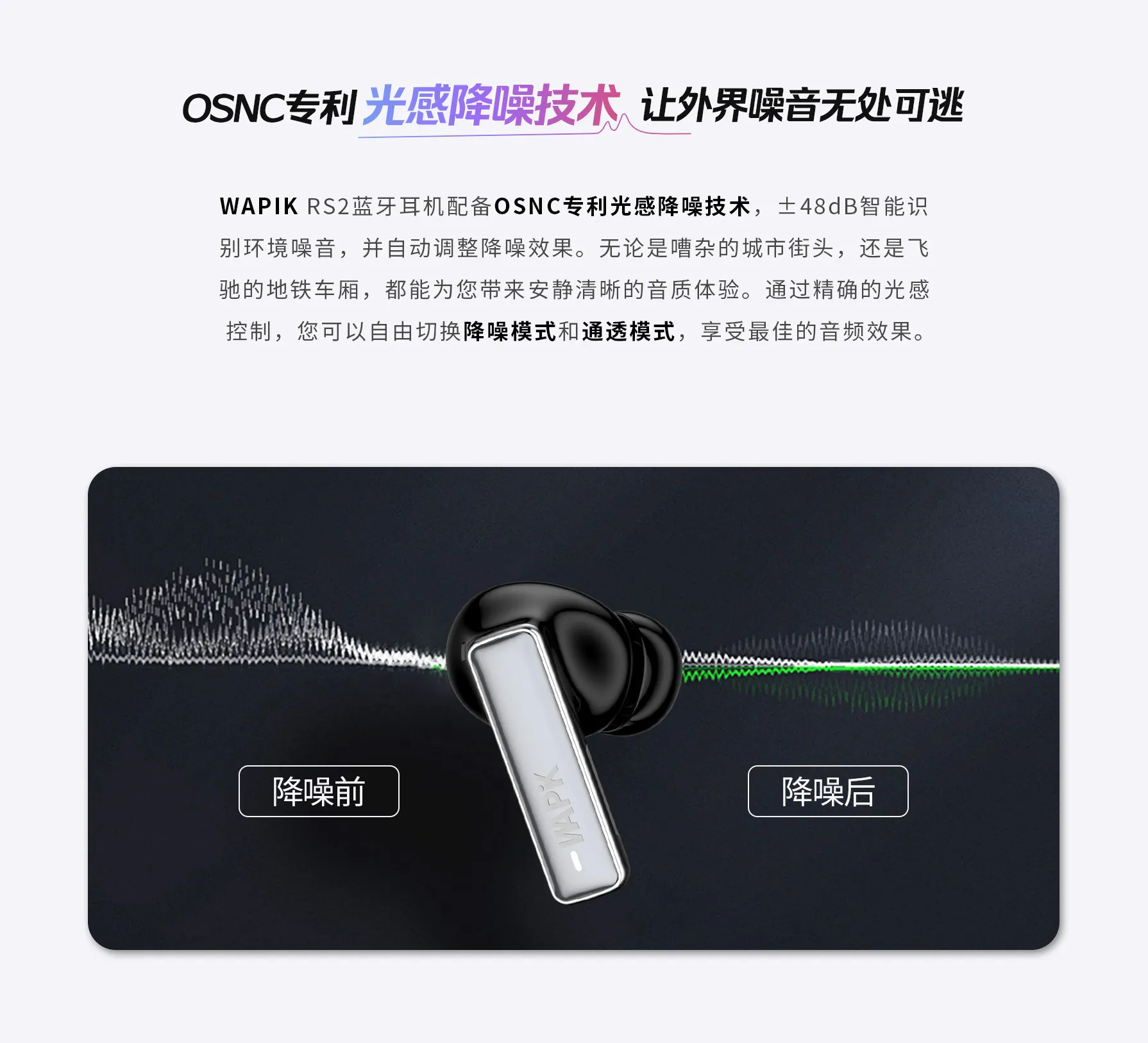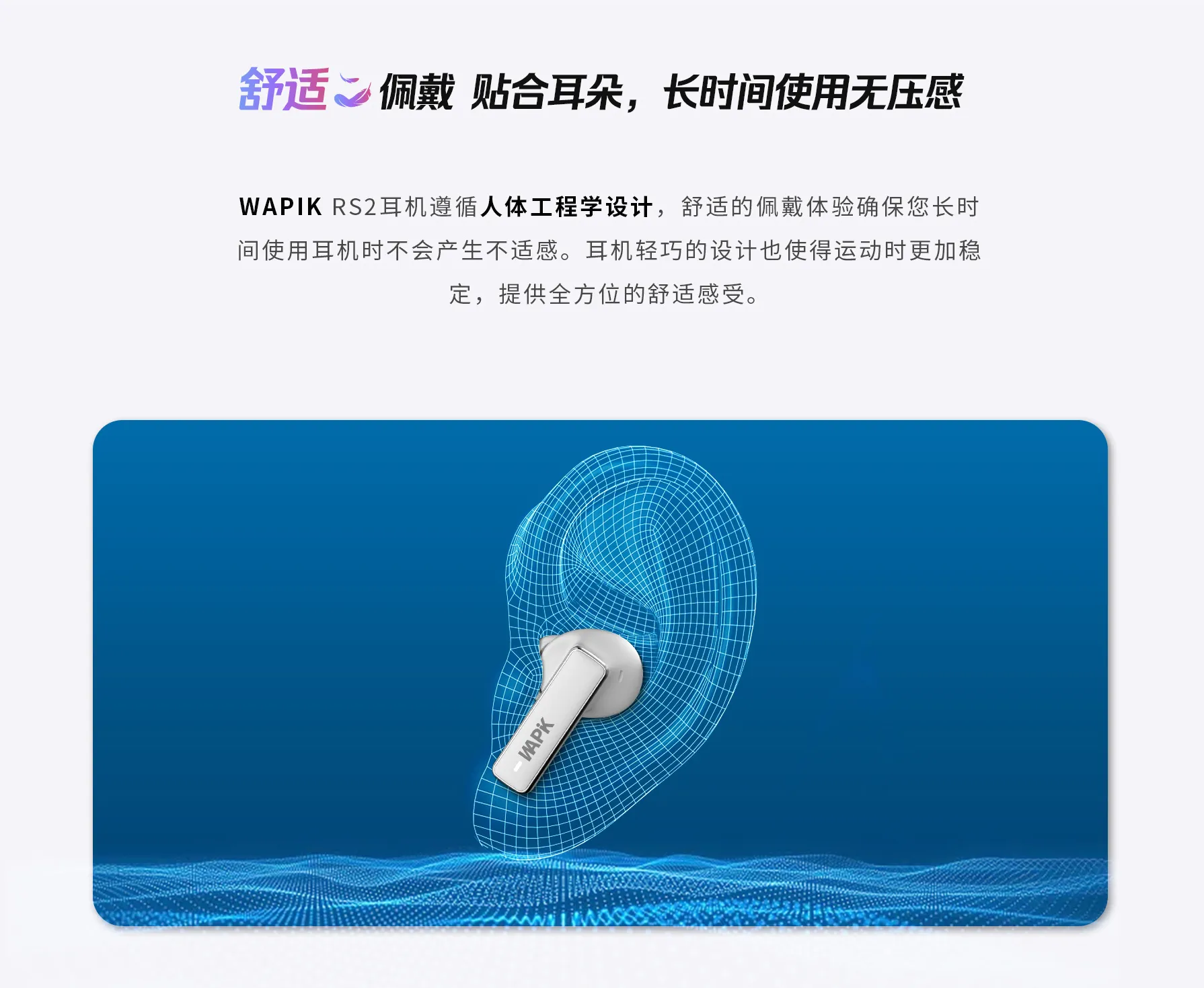 总觉得蓝牙耳机又重又闷?RS2 用 “轻” 体验打破顾虑 —— 机身轻量化设计,搭配贴合耳廓的半入耳形态,久戴不压耳、不闷汗,通勤挤地铁、久坐办公戴一天,耳朵也没有胀痛感,仿佛没戴耳机一样自在。