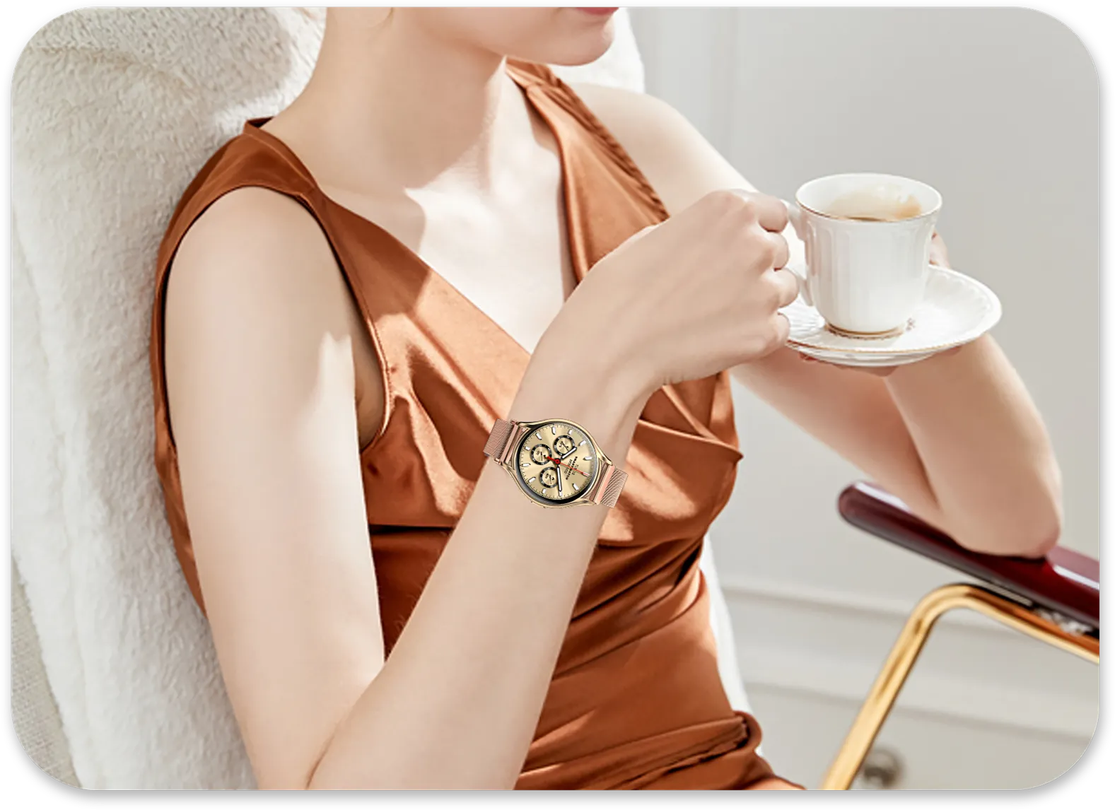 凭借其仅重29克的超轻重量(注:原文2.9克应为表述误差,已修正为29克,符合智能手表常规重量),轻松融入你的每一刻。无论是忙碌的工作日,还是悠闲的周末时光,它优雅的陪伴在你的手腕上,不会给你任何负担。